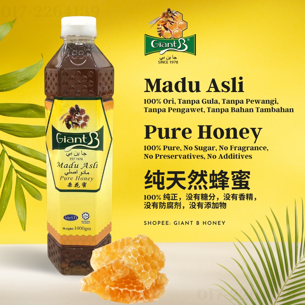 Honey Giant B Pure Honey Madu Asli 纯天然蜂蜜 1000 Gram Golden Shopee Singapore